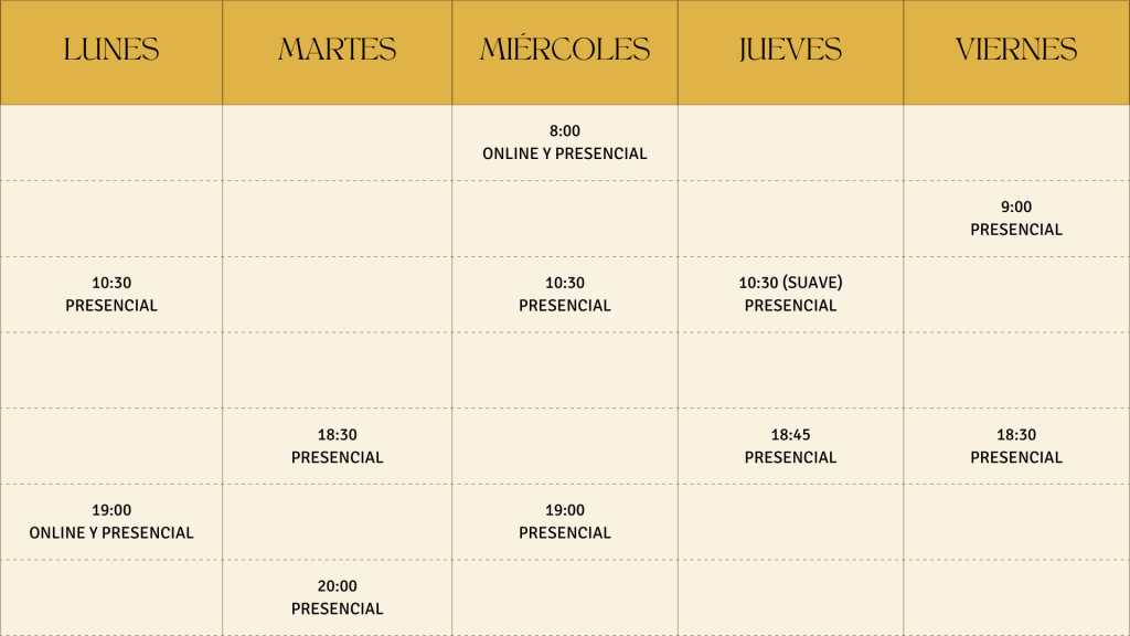 La clase del jueves a las 10:30 es suave. El resto de las clases están abiertas a todos los niveles (también practicantes avanzados), ya que la práctica se adapta a cada persona.
